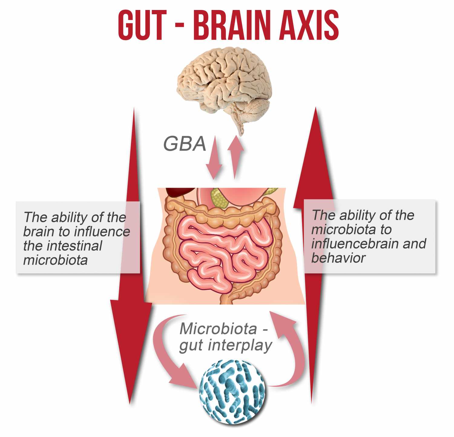 It is well established that brain regulates gut activity. Recently, more attention has been put on the influence of gut microbes on the brain. The so-called microbiota-gut-brain axis has then been identified as a bidirectional communication network, enabling regulation of the gastrointestinal tract by the brain and influence on brain function, especially areas devoted to stress regulation, by the messages from the gut.